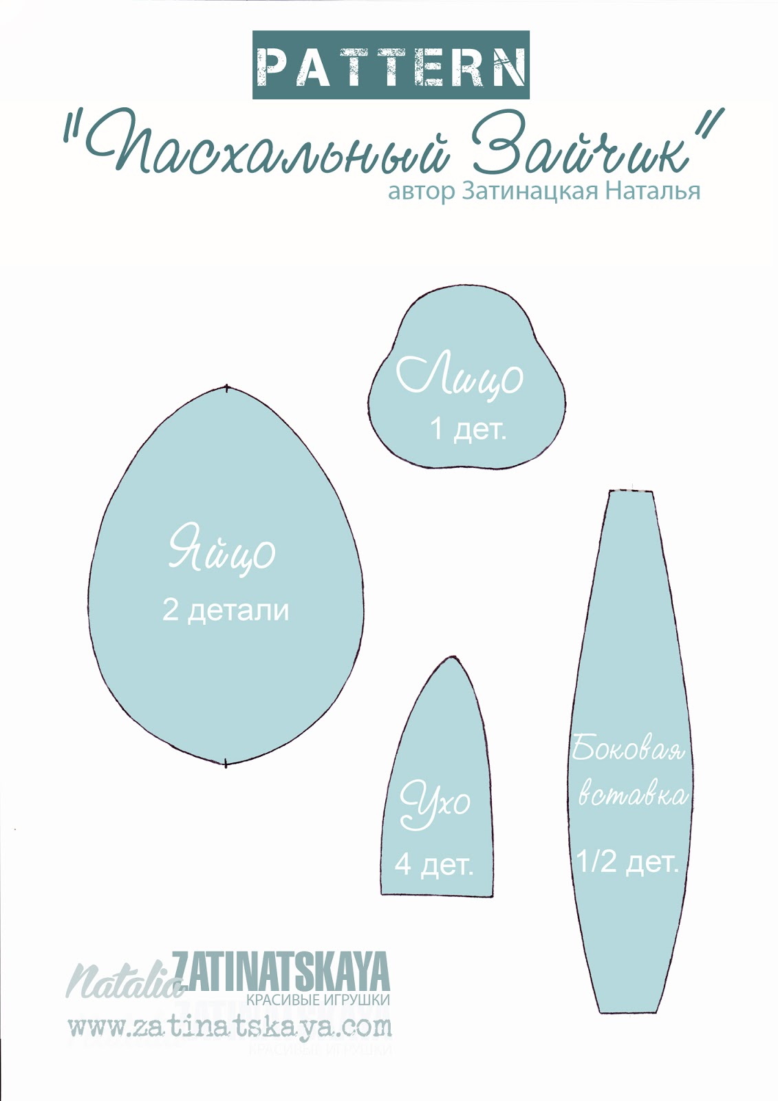 <a href="https://www.liveinternet.ru/users/tascha_t/post332326771/">Яйцо "Пасхальный Зайчик": выкройка и мастер класс Натальи Затинацкой+ рецепт вкусного кулича </a><br/> Выкройка дана в натуральную величину (лист формата А4). Высота яйца должна быть 10 см. Ниже прилагается мастер класс. Используемые материалы: 3 вида хлопка (яйцо - цветная ткань, лицо - однотонная, ушки - розовая и цветная). Флизелин (для уплотнения яйца и лица) Нитки Наполнитель Декоративный бантик Акриловые краски для ткани (коричневый, черный и белый цвета) Пастель (коричневый и белый цвет) ... <a href="https://www.liveinternet.ru/users/tascha_t/post332326771/">Читать далее...</a>