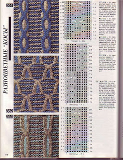 Узоры спицами. Разноцветные косы. |