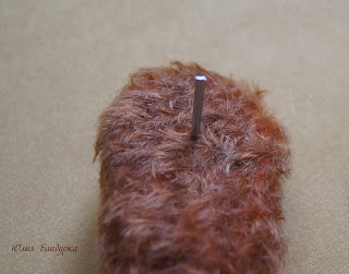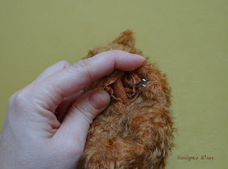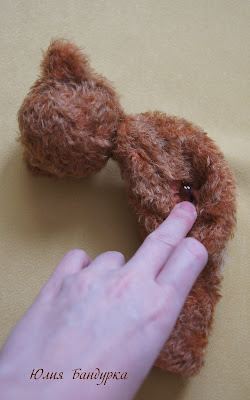 | Делаем прокол шилом в месте куда будет крепиться голова мишки. |