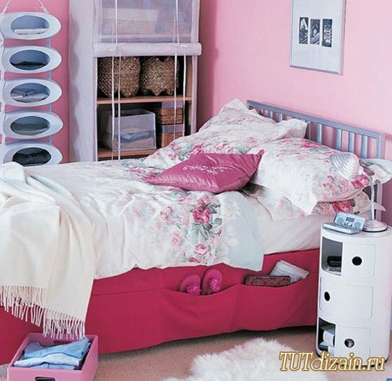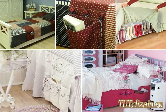 Сегодня на TUTdizain.ru отличная идея для тех, у кого так мало места в спальне, что между стеной и кроватью невозможно втиснуть даже самую небольшую тумбочку. Кто сталкивался с такой проблемой, тот отлично понимает, что по утру не доставляет удовольствия искать тапочки… и это мягко выражаясь. А если сшить для кровати покрывало с такими карманами, то туда можно и книжку приспособить.