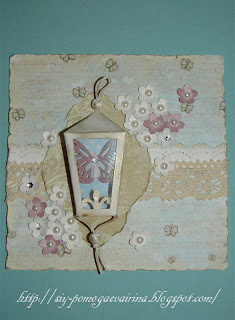 Вырезаем из бумаги заднюю часть фонарика, можно приклеить на него бабочку и стразу и вклеиваем всё это вовнутрь фонарика очень аккуратно, придётся помучится, не совсем удобно.