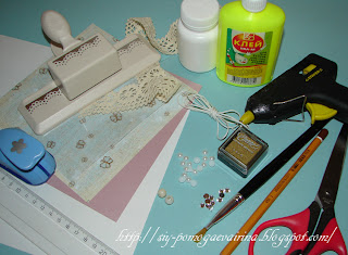 Подготавливаем скрап-бумагу размером 15*15 см, бордюр 2-3 см. *15 см., кружево, с запасом для загибания, 17 см.