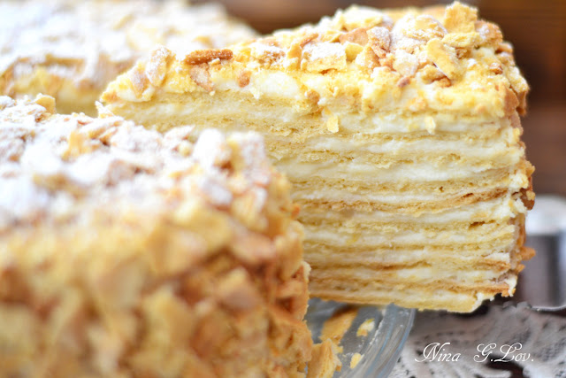 Наполеон... Самый любимый, самый домашний и наверное один из самых вкусных тортов в мире. Наполеон больше люблю не из слоеных коржей,хотя это классика,ну и что.., а из коржей, которые готовятся на муке, сметане и маргарине или же сливочном масле. С этими коржиками крем хорошо пропитывается, торт становится очень сочным,нежным, мягким и конечно же вкусным! Я немного поэкспериментировала,так как слышала,что очень вкусно, когда в крем добавляется цедра лимона. Захотелось приготовить именно с таким кремом. Сделала я два крема, т.е. сварила заварной и отдельно взбила сливки, затем соединила их,для еще более нежного,сливочного вкуса. В заварной крем я добавила мелко натертую цедру одного лимона, и вы знаете, мне понравилось это сочетание, получилось оригинально, необычно для Наполеона, но очень вкусно и с изюминкой. Ну и почему он называется "Выходной", не знаю,так захотелось,скорее потому-что хозяйки часто в основном в выходные дни могут уделить больше внимание приготовлению более сложных блюд,так как для меня этот торт не из легких,нет,не в плане,что там столько всего накручено)).Все легко и просто,но на кухне придется побегать пару часиков, так как сами знаете, каждый корж раскатать, затем выпечь, успеть следующий вынуть и т.д. А тут присел или не дай бог забыл))...