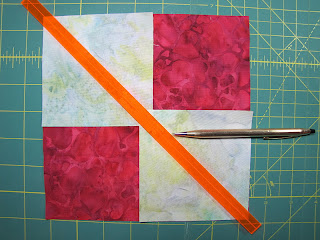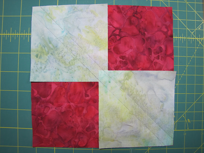 Press the small background squares open so that the seams are pressed towards the small squares.