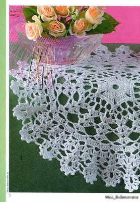 9ª carr. - Dentro de cada V fazer - 1 pt alto 3corr. 1 pt alto( V) , 3 corr. *Carr. 10 - Dentro de cada V fazer - 1 pt alto 3 corr. prender a corr. no topo do pt alto formando 1 picot, repetir formando 1 bloquinho de 4 pt alto e 3 picots- 2 corr. 1 pt. baixo no meio das 3 corr. da carr. anterior, 2 corr. *Para emendar formando a toalhinha-Fazer 7 motivos de margaridas, 1 no centro e 6 circundando a volta , ( prender o picot do meio do bloquinho), prender dos lados e no círculo do meio sempre prendendo 3 bloquinhos e pulando 1. Olhar a foto.