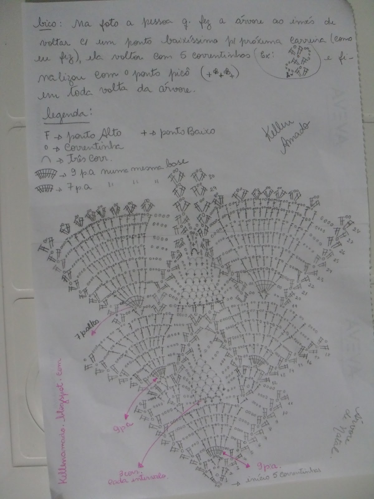 берём третий и как бы основной цвет розового .......вяжем им опять же по схеме, внимательно - не пропускаем воздушные петли и столбики