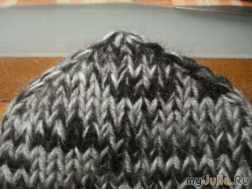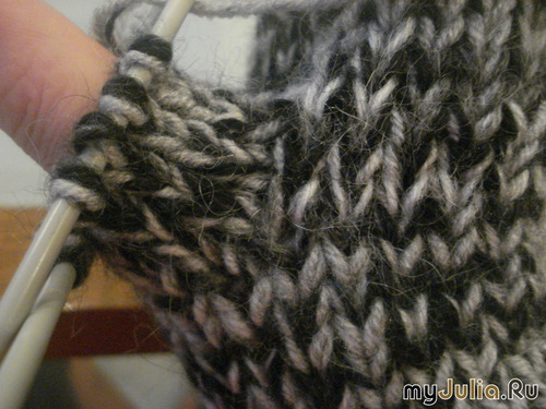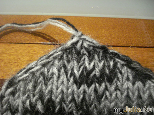 С 280-го по 289 ряды вязать платочной вязкой. В 290-м ряду от начала работы все петли закрыть в одном ряду.