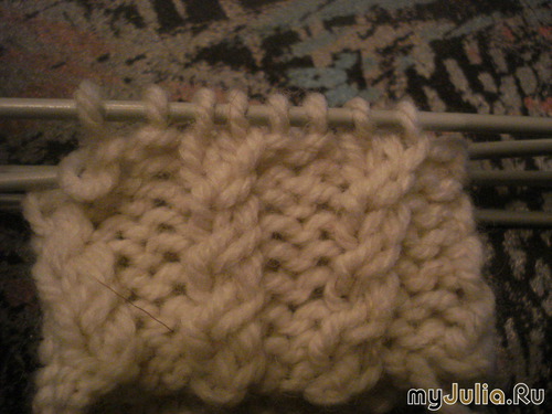 рельефный узор: 16 петель на 25 рядов = квадрат 10 на 10 сантиметров;