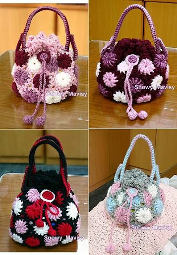 Выполнить шнуры любой толщины длиной не менее 33 см для кажд. вензеля. Закрыть п. Руководствуясь фото, выложить его по краю изделия и пришить. Как пришивать шнур к изделию, см. здесь | Выполнить шнур длиной 38 см. Закрыть петли. Выложить шнур в виде цветка с 6 лепестками. Пропустить конец нити через середину цветка, затянуть и закрепить (см. фото). Повторить до получения необх. кол-ва цветков. Пришить цветки по своему усмотрению. | Кажд. ракушка вяжется отдельно, а затем пришивается к изделию. Набрать 21 п. (не стягивать!). Связать 2 р. чул. в. Протянуть 1 -ю п. через остальные и закрыть ее. Выполнить шов. Повт. до получения необходимого кол-ва деталей. Пришить ракушки по краю изделия. |