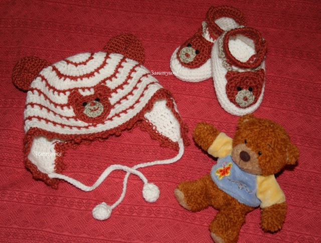 Выполнить шнур любой толщины длиной не менее 12,5 см. Закрыть п. Соединить концы шнура, сформировав кольцо. Выполнить шнуры такой же толщины, как и кольцо, длиной не менее 5 см, по 2 шт. для кажд. крестика. Руководствуясь фото, пришить "крестики" и "нолики". Как пришивать шнур к изделию, см. здесь | Выполнить шнур любой толщины длиной не менее 9 см когда отделка будет закончена. Руководствуясь фото, пришить шнур к изделию. Как пришивать шнур к изделию, см. здесь. Закрыть п. шнура | (кол-во п. кратно 10 + 5) Узор [корзинкаk: 1, 3, 5-й р. (лиц. сторона): 5 лиц., *5 изн., 5 лиц.; повт. от * до конца р. 2-й и 4-й р.: изн. 6, 8, 10-й р.: 5 лиц., *5 изн., 5 лиц.; повт. от * до конца р. 7-й и 9-й р.: лиц. Повт. 1-10 р. до получения каймы желаемой ширины. Цветы: *набрать 5 п., повернуть работу, закрыть 5 п., сн. оставшуюся п. назад на левую спицу, работу не поворачивать, повт. от * еще 6 раз. Закрыть п. Вдеть конец нити в гобеленовую иглу, заправить его по краю детали и закрепить. Повт. до получения необходимого кол-ва цветов. Пришить цветы к изделию. Выполнить в середине кажд. цветка французский узелок. |