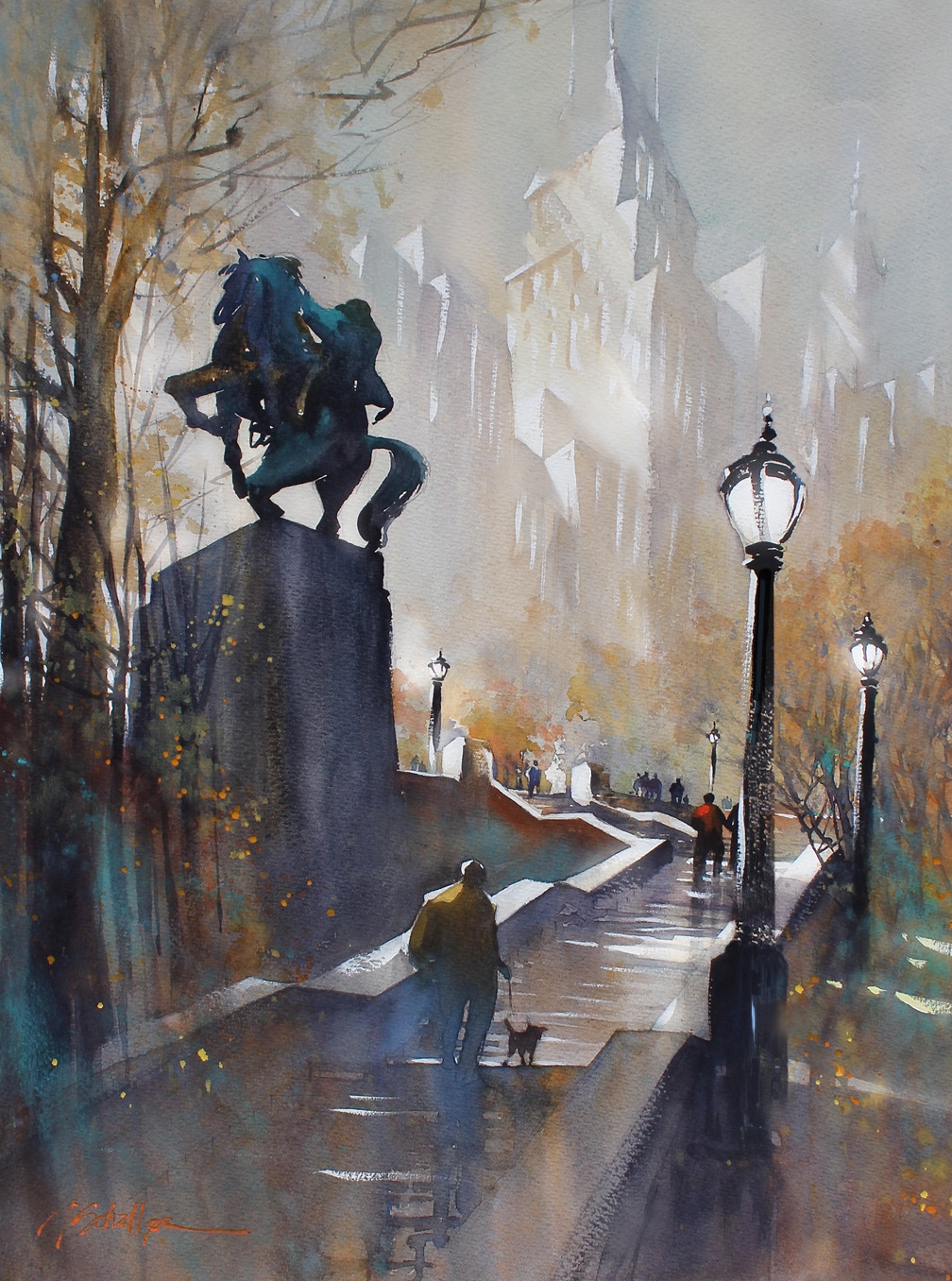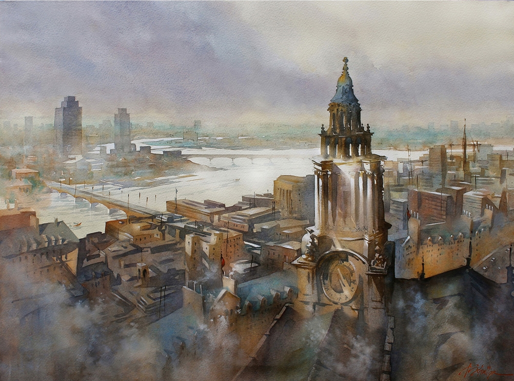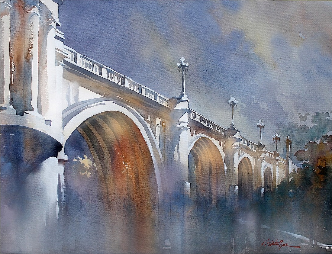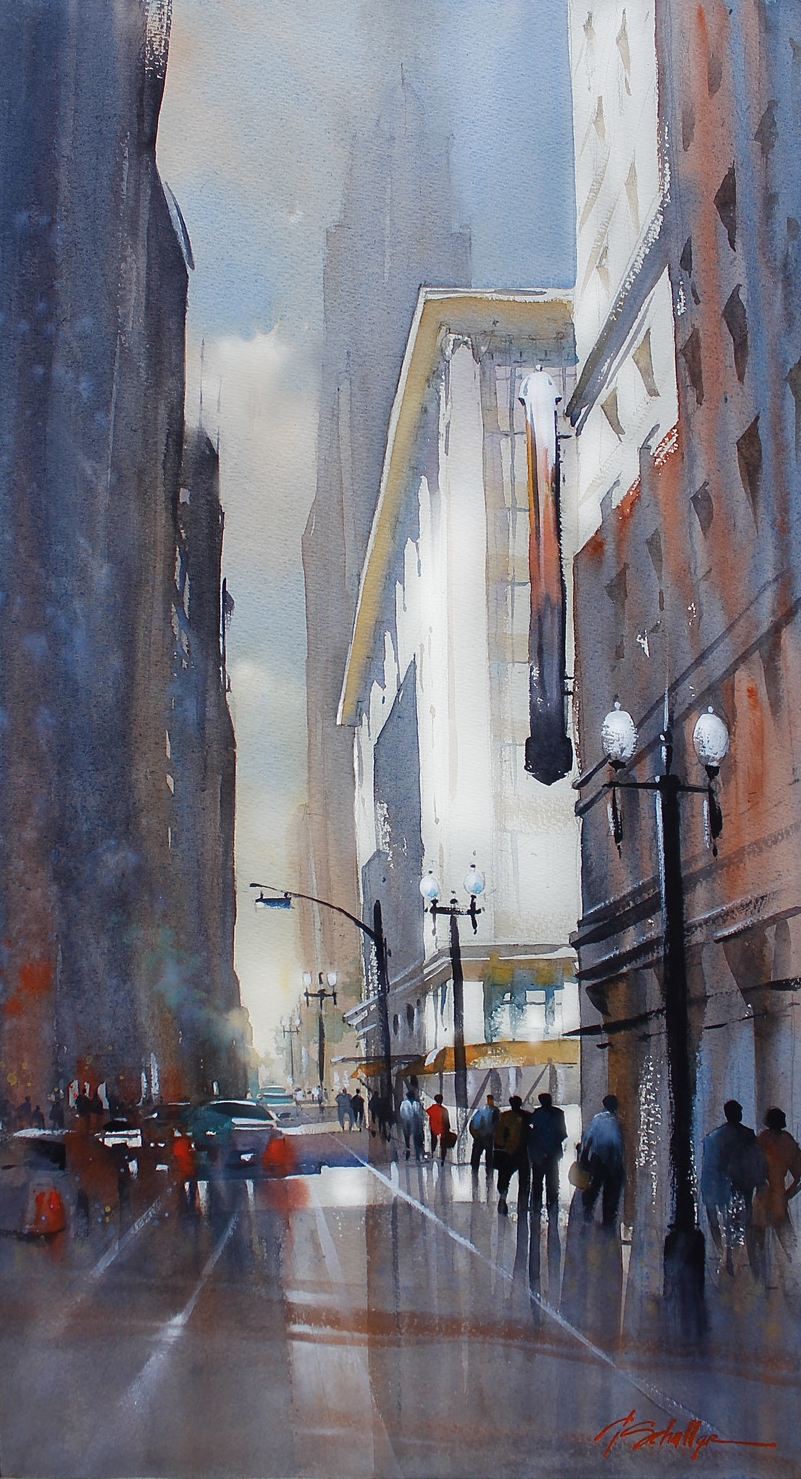 Томас Шаллер (Thomas W. Schaller) – талантливый современный акварелист, чьи работы привлекают внимание зрителей утонченностью и воздушностью. Написанные им урбанистические пейзажи полны света, они буквально пронизаны солнечными лучами, которые, словно по волшебству, наполняют жизнью его картины. «Не рисуйте то, что видите. Рисуйте свет, который оживляет предметы», - такой совет дает художник тем, кто пробует себя в живописи. Томас живет и работает в Лос-Анджелесе, увлечение акварелью пришло к нему не сразу. Он долго работал архитектурным дизайнером, но однажды в разговоре с другом задумался, чего ему не хватает для самореализации. Поразмыслив, решил, что нельзя зарывать талант в землю и – сменил профессию. Художник стремится не просто воссоздавать то, что видит, а постигать самую сущность предметов и явлений. Ему интересно передавать зрителю те «истории». которые могут поведать здания, площади, кварталы.По работе Томасу и раньше часто доводилось делать чертежи, продумывать дизайн зданий. Однако тогда ему приходилось уделять внимание правильной перспективе, точно просчитывать масштабирование рисунка. Художественное полотно, напротив, дает возможность реализовать свой творческий потенциал, сосредоточиться на эмоциональной составляющей. Динамику его акварелям придает игра света и тени, на картинах часто можно увидеть людей, идущих по улицам, что тоже оживляет изображения. Рассказывая о секретах своего мастерства, Томас Шаллер призывает рисовать не те объекты, которые вдохновляют, а само по себе вдохновение, ведь задача художника заключается в том, чтобы суметь передать возникающие у него эмоции и чувства. |