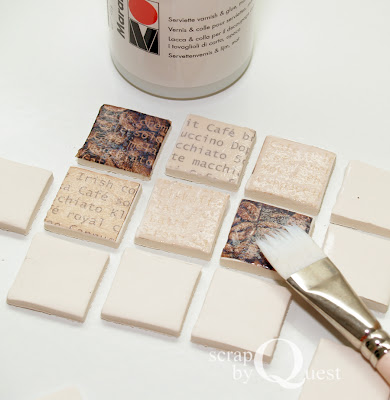 Шаг 3. Берем салфетку для декупажа (или декупажную карту) необходимого нам дизайна, режем на квадратики такого же размера как и заготовки.