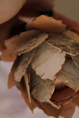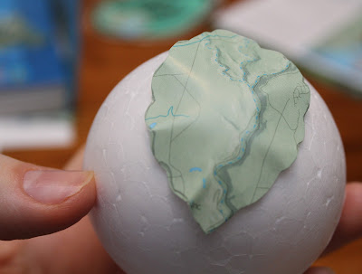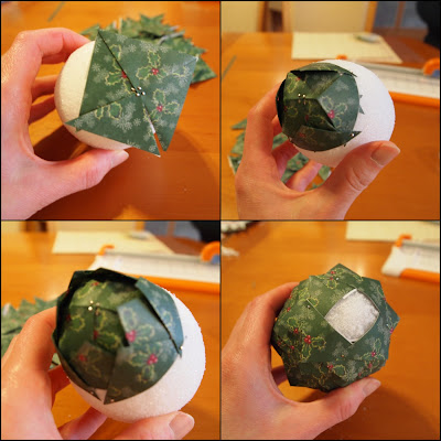 Постепенно обклеиваем весь шар вырезанными по шаблону лепестками.