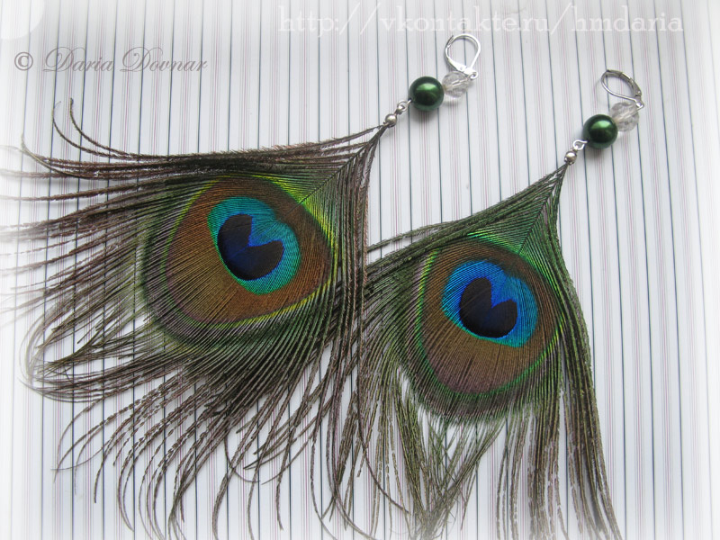 Вчера сделала, на самом деле, шикарные серьги с восхитительными перьями павлина! Какие же они классные!   я бы еще каких экзотических перышек хотела бы)))