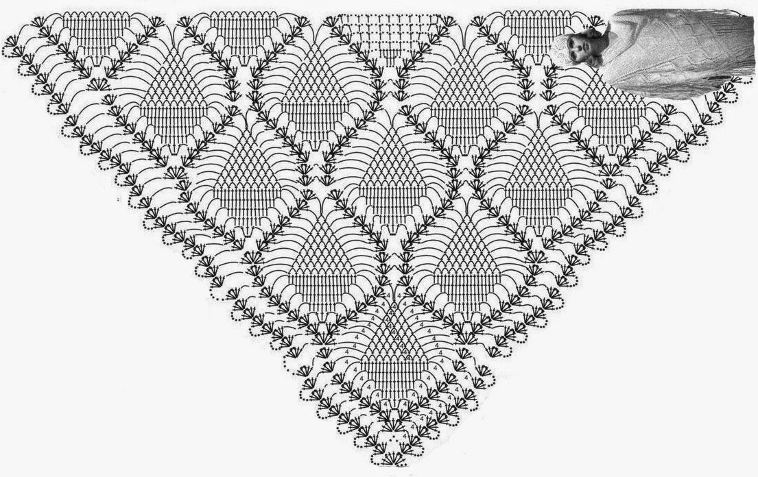Ажурный палантин в технике брюггского кружева из журнала Vogue Knitting Crochet связан крючком № 1,8 из 200 г пряжи (100: бамбук; длина 274 м /50 г), из которых нужно 150 г основного и 50 г дополнительного цвета. Размер палантина 172,5 х 51 см.