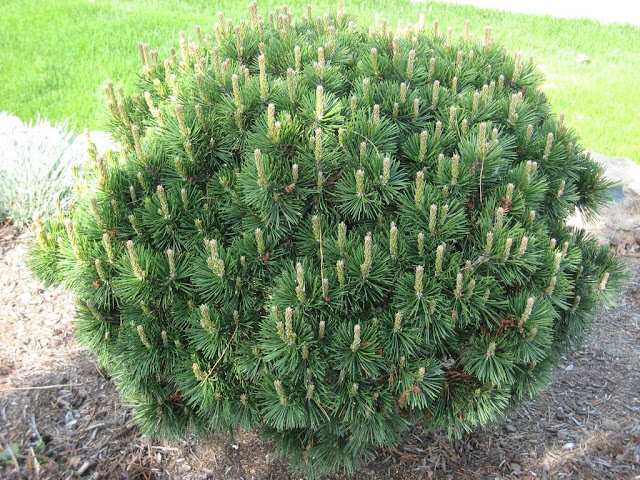 «Mughus» – форма кроны – кустарниковая, развесистая, иногда стелющаяся; высота взрослого растения – 1,5 м; диаметр – 0,6 м; цвет хвои – темно-зеленый.