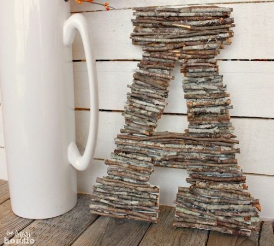 Возьмите своих детей на прогулку и насобирайте веточек и ветвей вместе, потом прийдите и домой и сделайте пару замечательных украшений. Венки идеально подходят для загородного и естественным декором в любое время, но особенно осенью или зимой, и что может быть более экономичной, чем они являются? Вы можете сделать монограммы, слова, прикрепить веточки к кадрам, подсвечники, поставить их в вазы для букетов или сделать венок из них. Веточки выглядит удивительным с тыквы, искусственными овощами, шишками , что в загородном стиле, что сделает ваш интерьер привлекательным. Посмотрите на очаровательные идеи ниже и дайте упасть в прохладу веточки с украшениями!