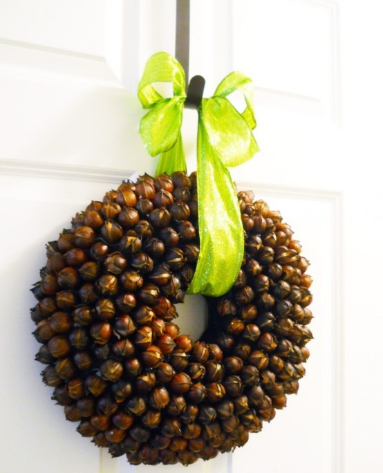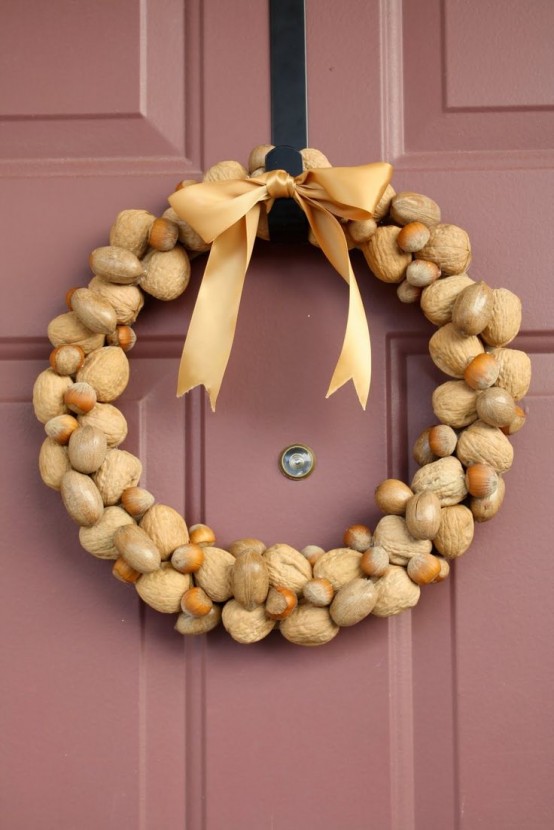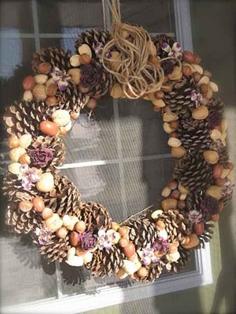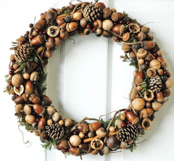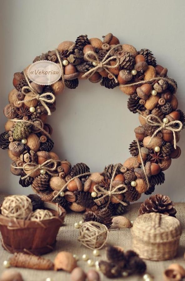 Наступила осень и мы должны приветствовать ее различными украшениями, среди которых венок является, пожалуй, простейшим и наиболее универсальным. Сегодня я покажу кучу венков, которые потрясающие и будут волновать тех, кто любит оригинальные украшения – это орех и желудь венки! Орехи и желуди выглядят потрясающе отдельно или вместе, сосновые шишки,палочки корицы, еловыми ветками и красивой тесемкой или шпагатом .Получайте вдохновение!