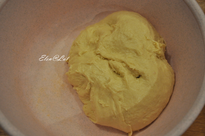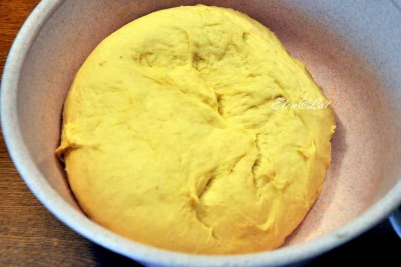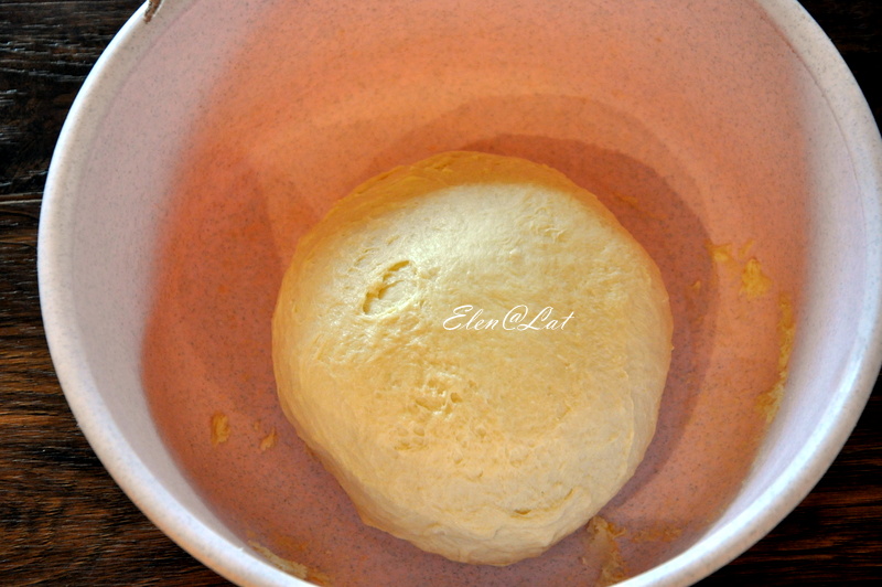 Подошедшее тесто разделите на 5 или 6 кусочков (у меня шесть).