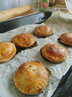 Если это закрытый пирог, то на нижний пласт кладу начинку, накрываю верхним пластом, защипываю, накалываю и смазываю верх желтком, и в духовку на 40 мин.