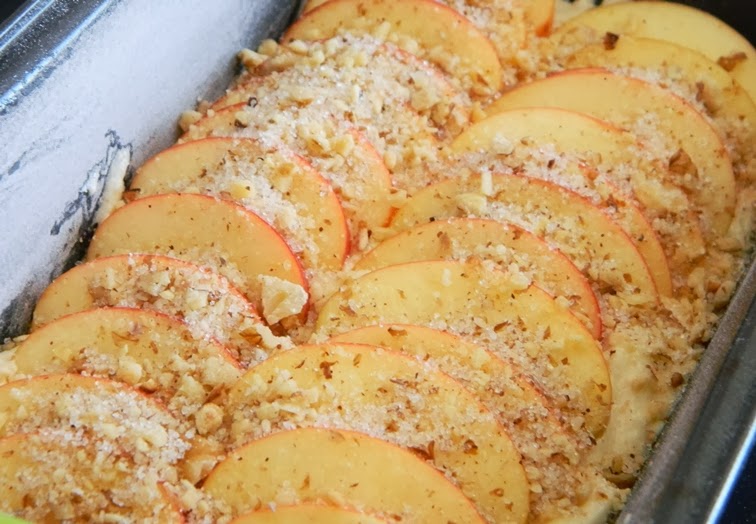 Половину орехов измельчить и смешать с 20 гр. сахара и корицей. Остальные орехи оставить для верха пирога.