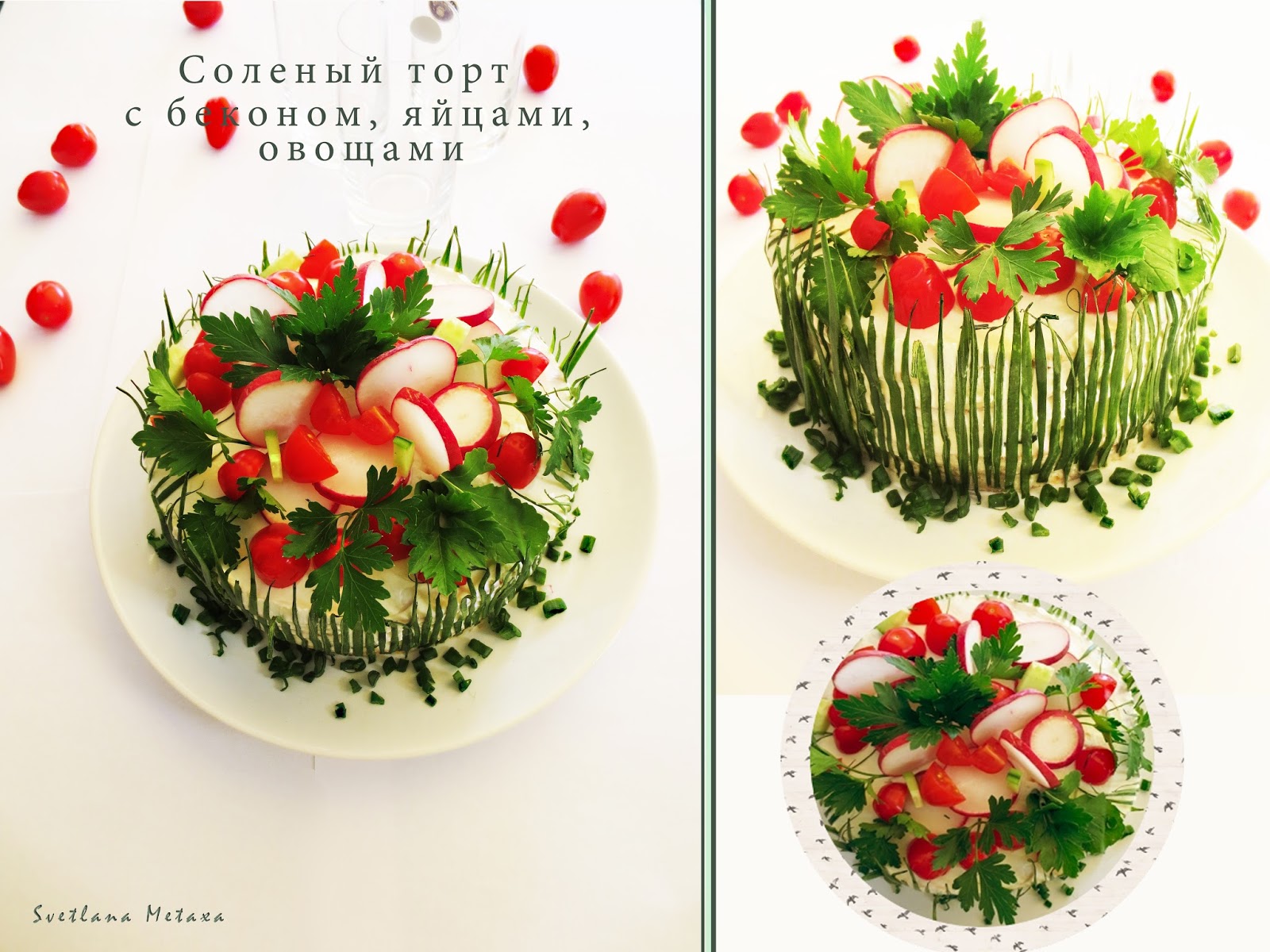 СОЛЕНЫЙ ТОРТ С БЕКОНОМ, ЯЙЦАМИ И ОВОЩАМИ |