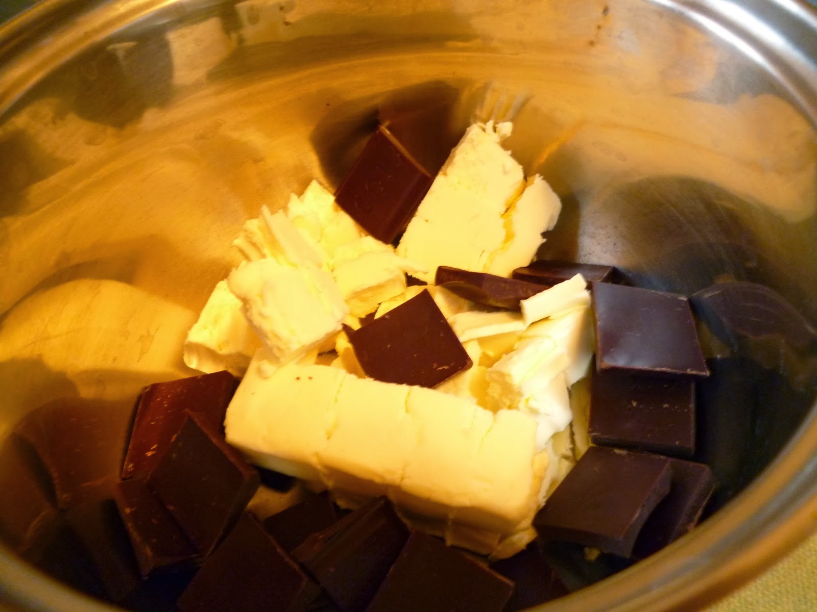 Форму застелить пергаментом. Попеременно, то шоколадную то светлую массу, столовыми ложками выложить в форму и разровнять.