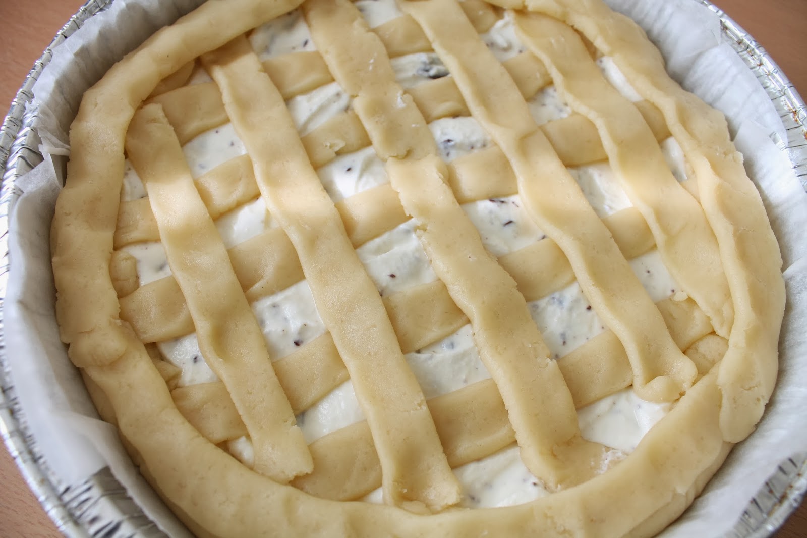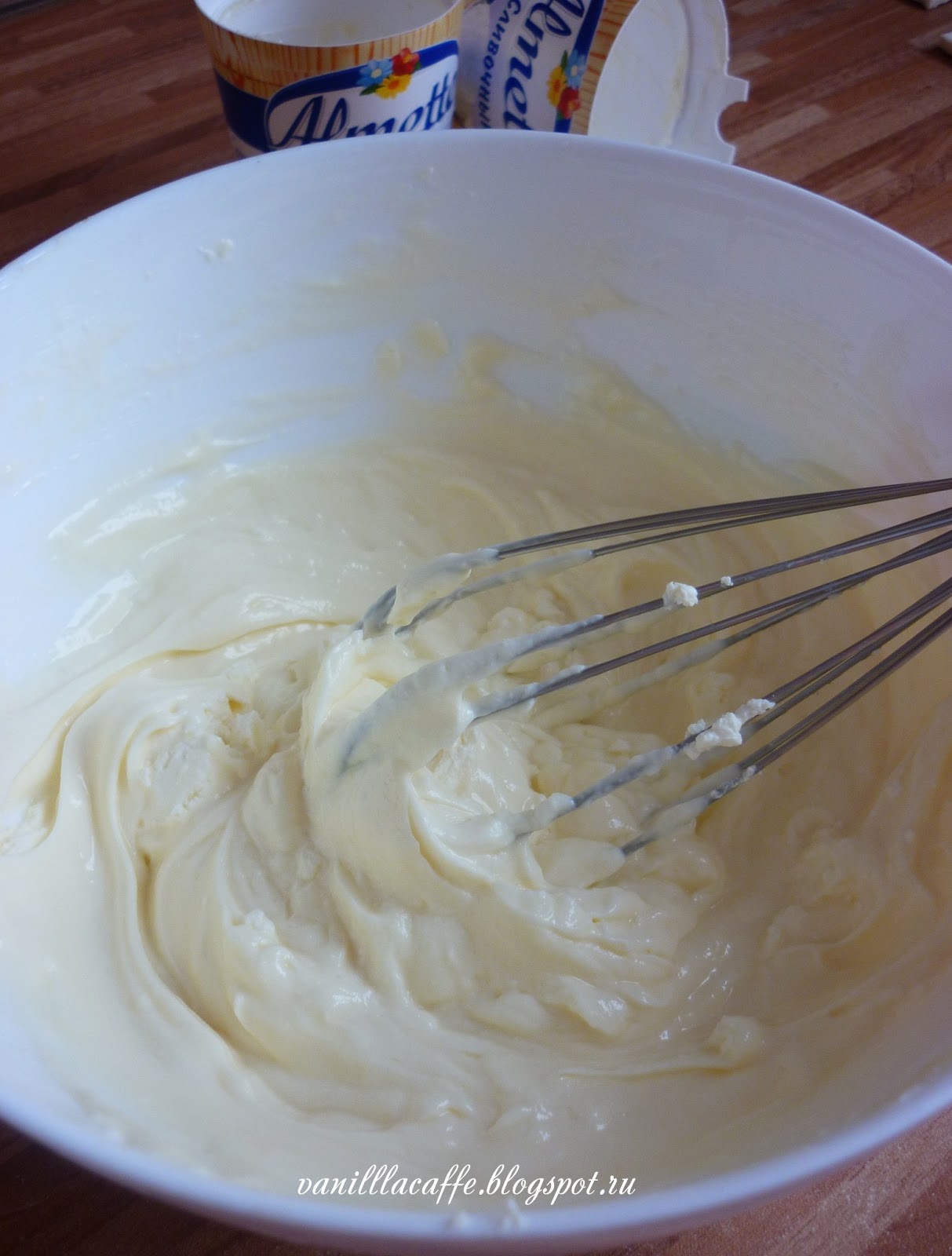 Взбить остальные ингредиенты, вылить на основу и выпекать примерно 40 минут, оставить в духовке еще на час. Остывший пирог поставить в холодильник на 2 часа, перед подачей.