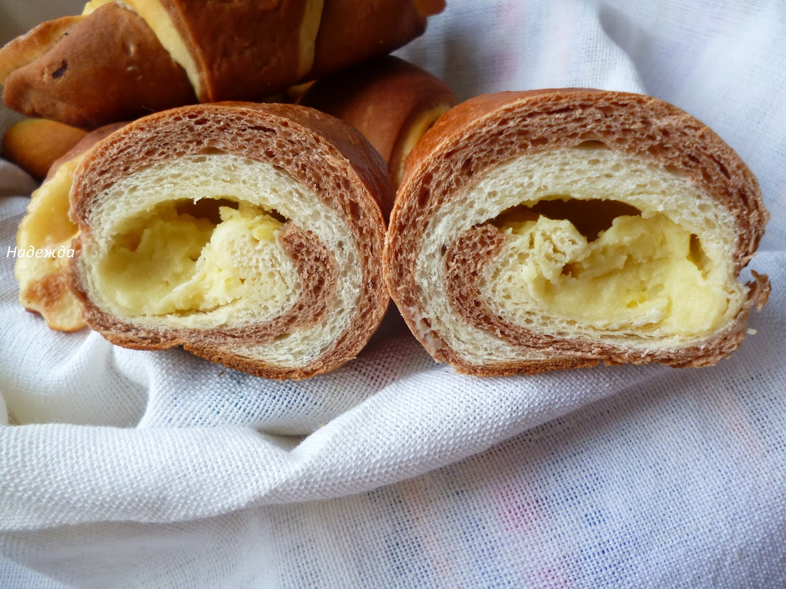 Смазываем булочки взбитым яйцом и выпекаем в духовке при 170-180 градусах. 20-25 минут до румяной корочки.(время выпечки примерное,духовки у всех разные).Готовые булочки достать из духовки,накрыть полотенцем и дать постоять минут 10-15.Приятного аппетита!