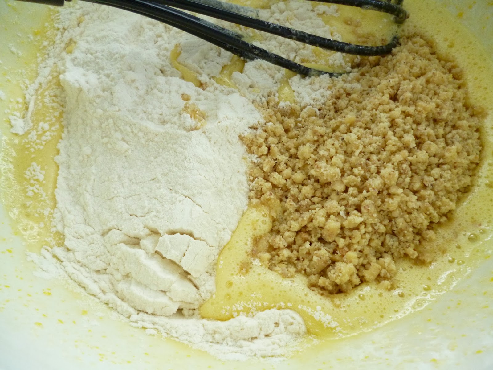 4.Теперь черед муки. Ее нужно просеять в тесто вместе с разрыхлителем и снова все тщательно перемешать, добавив соль. Все, тесто для венгерского пирога готово! Берем подходящую форму. Лучше всего использовать прямоугольную или квадратную форму размером пятнадцать на двадцать сантиметров. Форму нужно предварительно смазать сливочным маслом и присыпать мукой, что пирог не прилип. Так же можно использовать силиконовую форму, ее ничем смазывать не надо. Выливаем тесто в форму, оно довольно жидкое, так и должно быть.