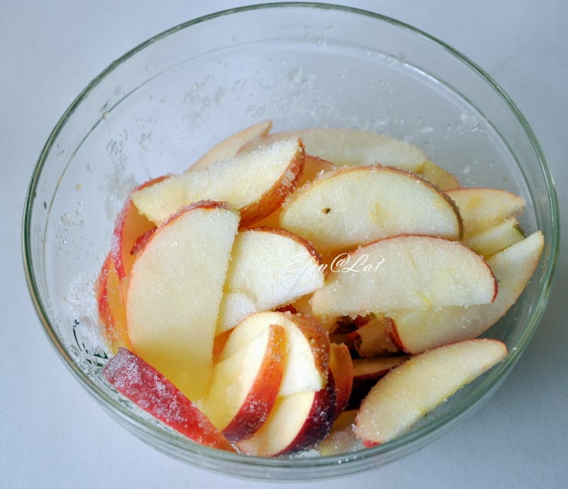 Яблоки нарезаем ломтиками, смешиваем с сахаром и поливаем апельсиновым или лимонным соком. Даем настояться.