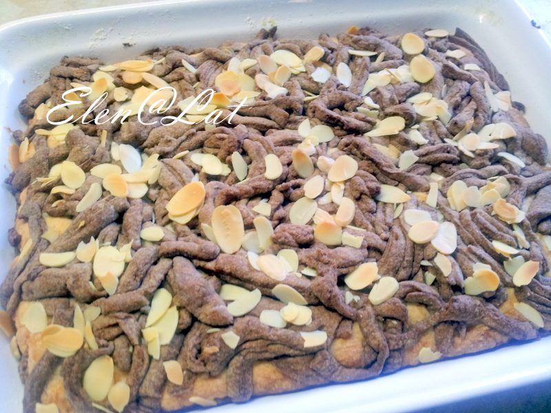 7.Вынуть пирог из духовку,дать немного(5 минут) остыть,наколоть пирог зубочисткой и залить еще горячий пирог теплым сиропом.