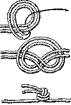 3. Продень нижний конец шнура через первую петлю: 1 и 2 раза – над шнуром (над второй петлей), 3 раз – под. Затем бери другой кончик шнура.