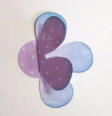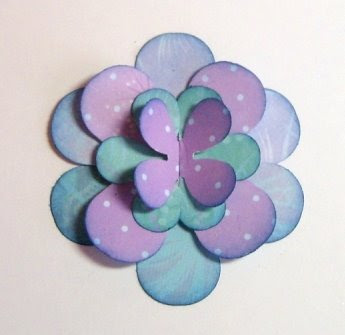 Now I will make a big flower. You need a two sided pattern paper, and punch out two large, and two small flowers, and a small circle. The circle will not show.