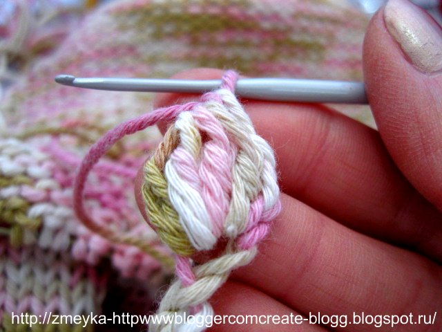 крючком так, буд-то хотим связать ее перекрученной