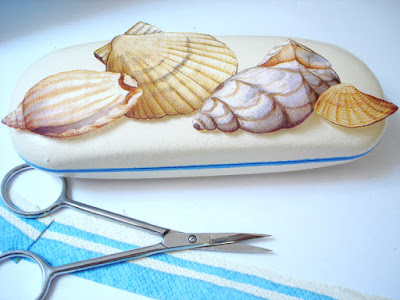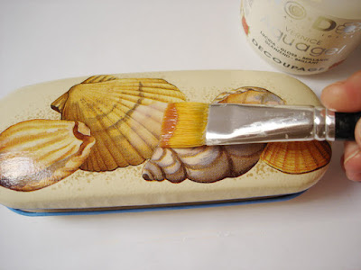 Режем выбранной теме салфетки и приклейте ее к случаю (этот шаг точно описано в предыдущих курсов).