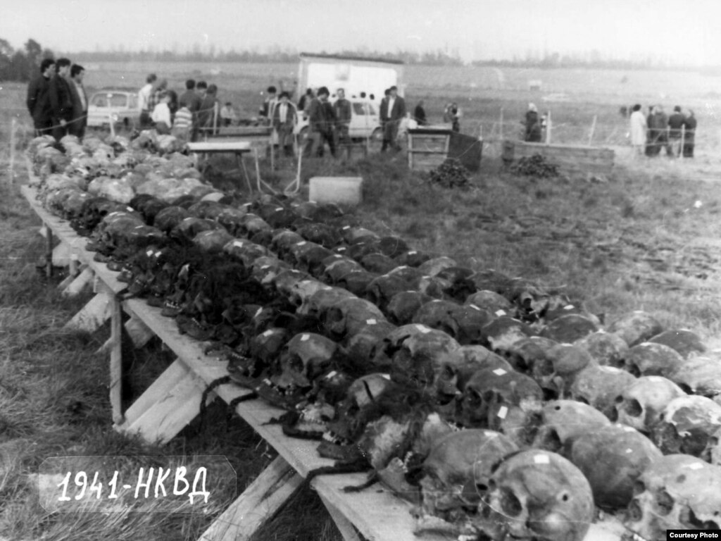 Партійні чини і підручна преса поширювали брехню, що це жертви німців або «українських буржуазних націоналістів». Як написав у спогадах слідчий Данилів, «яке розчарування було в них, коли в зітлілій одежі виявився документ - копія вироку на польського офіцера Станіслава Мишковського, виписана на бланку НКВС».