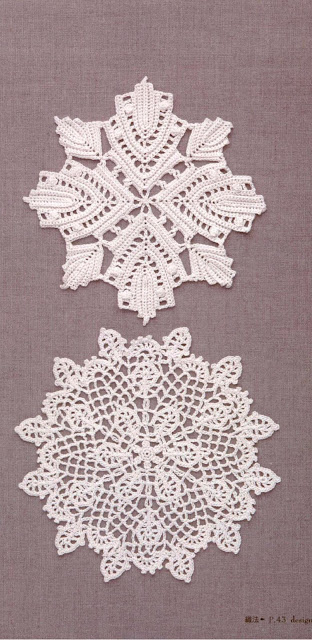 Вязаные салфеточки крючком и их схемы в японском журнале.