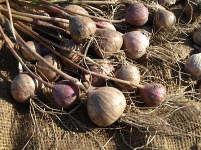 Посадив однозубки, получаю на следующий год полноценные здоровые головки. Структура посадок такая: из семи гряд у меня четыре засажены обычными калиброванными зубками, пятая и шестая - крупными однозубками, и седьмая - крупными бульбочками и мелкими однозубками. Посадочный материал созревает на две недели раньше, чем товарные головки. Таким образом, уборка идёт постепенно, начиная с мелких, заканчивая крупными.
