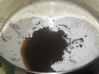 Заливаем его приготовленной глазурью: 10 гр сметаны нагреваем, добавляем 3 столовые ложки какао и 2 столовые ложки сахара. Доводим до кипения, помешивая, кипятим 1-2 минуты.