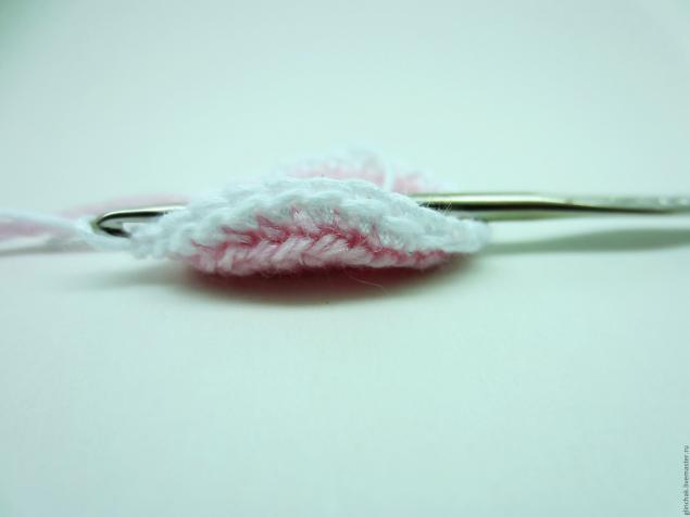 1р. Цепочка из 12вп, начиная с 3й петли от крючка – 9х,3х в последнюю петлю цепочки, работу повернуть, продолжить на противоположной стороне – 8х,V = 22
