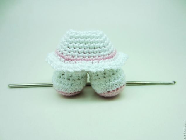 Первый ряд туловища мы вяжем на 13 петлях каждой ножки, т.е. две петли на каждой ножки у нас выпадают из вязания.