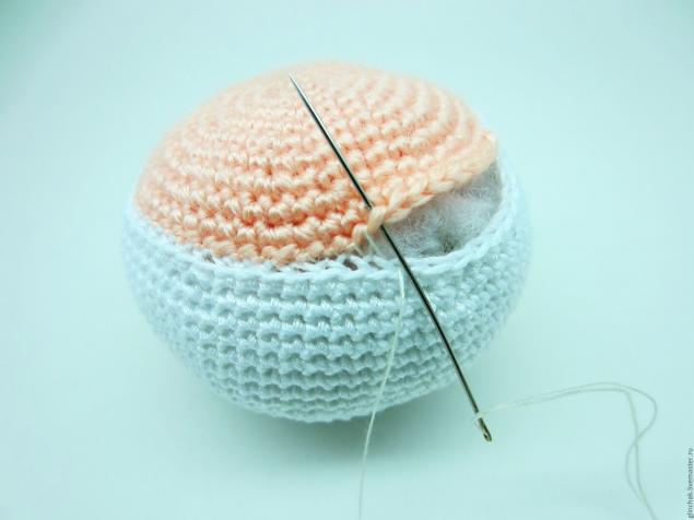После того, как голова будет окончательно наполнена, отверстие зашить.