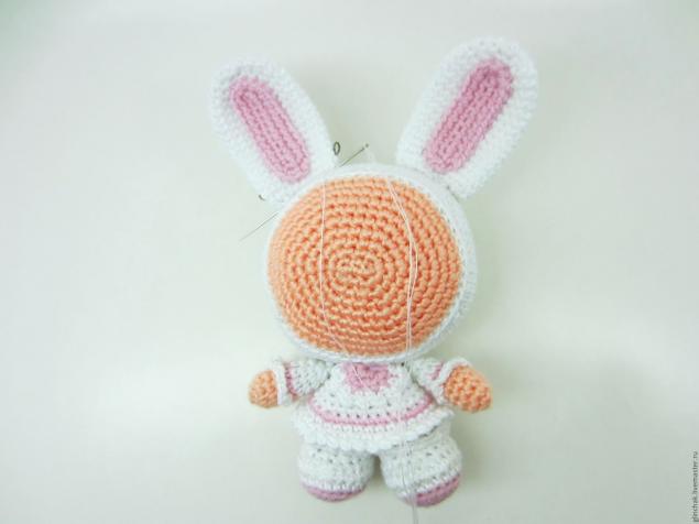 Пришить ушки к голове, ручки к туловищу, предварительно сколов детали булавками.