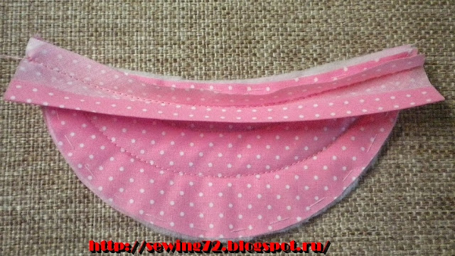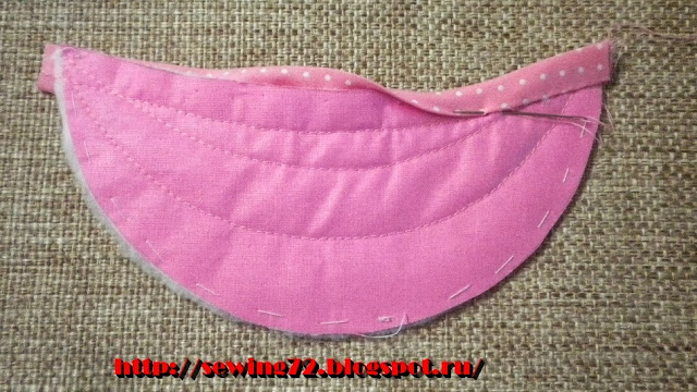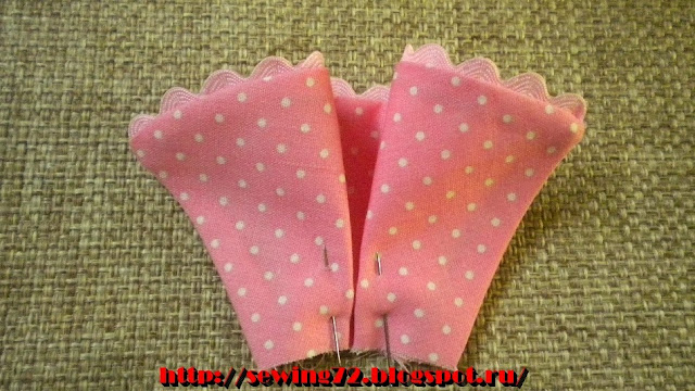 10. Берём детали кроя хвостиков и настрачиваем тесьму.
