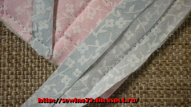 6. Настрачиваю косую бейку на верхнии части прихватки следующим образом