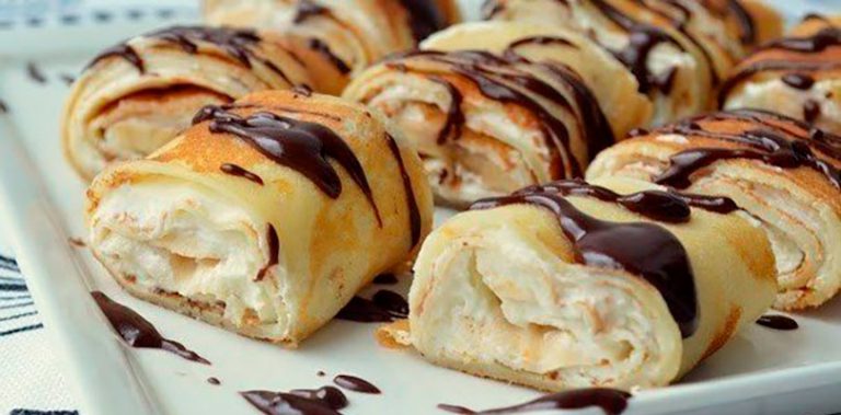РУЛЕТИКИ ИЗ БЛИНЧИКОВ С ТВОРОЖНО–БАНАНОВЫМ КРЕМОМ — ВКУСНЯТИНА! |