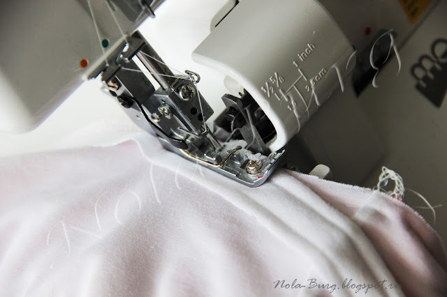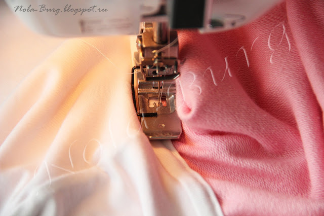 Приметываю двойной капюшон к основе кофты и на оверлоке пришиваю бейку