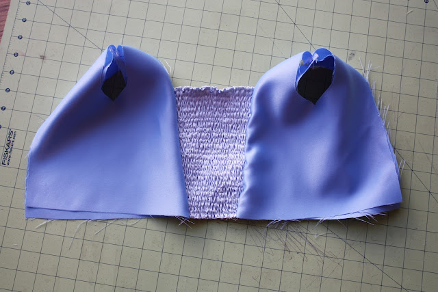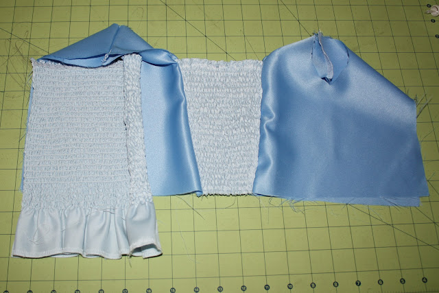 Прикрепите юбку и лиф, сначала прижав передние и обратно гофрированной секции, а затем стороны. Если вы окажетесь необходимости растягивать эластичный немного, чтобы соответствовать правильно, убедитесь, что вы делаете это по бокам, не над гофрирования. Вы хотите, чтобы убедиться, гофрированные секции имеют столько растянуть как можно с ними.