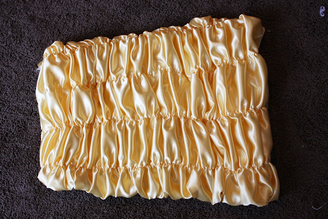 Продолжайте шить строк упругой нити вниз по всему куску ткани.